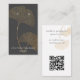 Modern earring display card features gold gingko leaf illustration on dark gray background with white contemporary text on front, and gray text with customizable QR code for your website or social media on back.