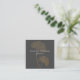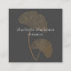 Modern square business card features gold gingko leaf illustration on dark grey background with white contemporary text on front, and grey text with customisable QR code on back.