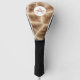 A modern monogram and nametag on a giraffe pattern on an golf head cover.