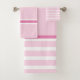 Show off your love for pink by decorating your bathroom with this modern pink and white striped bath towel set. This towel set was designed for a modern girl. Coordinate this towel set with the same colour pink in a floral pattern towel and it will add interest to your decor. Buy as a basic towel set or give as a gift at a housewarming or another occasion.