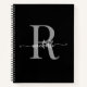 Modern, Simple, Elegant Black and Grey Monogram Initial Name Feminine Signature Script Spiral Notebook. This minimalist plain colour design featuring your first name in a pretty hand lettered swash tail font typography (or calligraphy), monogram initial template, easy to personalise them. Great custom personalised girly gift for Birthday Party, Housewarming, Wedding, SWEET 16 Birthday party, Bridal shower, BABY shower and for anyone who loves pretty minimalist style.