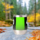 Celebrate the big four oh in style with this stainless steel stemless wine tumbler, which features striking black, white, and bright green block and handwritten lettering set on a rich black to smoky grey background. Reverse shows identical design.