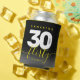 Celebrate the big three oh in style with this modern design, which features striking black, white, and bright yellow block and handwritten lettering set on a rich black to smoky grey background. Reverse shows identical design.