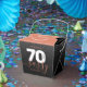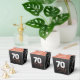 Celebrate the big seven oh with this stylish modern design, which features striking black, white, and copper block and handwritten lettering set on a smoky grey to rich black background. Reverse shows identical design.