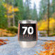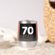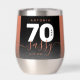 Celebrate the big seven oh in style with this stainless steel stemless wine tumbler, which features striking black, white, and copper block and handwritten lettering set on glittery copper, rich black, and smoky grey backgrounds. Reverse shows identical design.