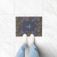 Modern girly floral colourful and navy blue personalised initial and name simple classy door mat design.