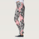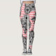 Modern Girly Flowers Leaves and White Pink Stripes Leggings