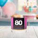 Celebrate the big eight oh in style with this stemless wine glass, which features striking black, white, and hot pink and handwritten lettering set on glittery hot pink, rich black, and smoky grey backgrounds. Reverse shows identical design.