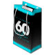 Celebrate the big six oh with this stylish modern design, which features striking black, white, and ice blue block and handwritten lettering set on a rich black to smoky grey background. Reverse shows identical design.