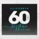 Celebrate the big six oh with this stylish modern design, which features striking black, white, and ice blue block and handwritten lettering set on a rich black to smoky grey background.