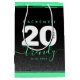 Celebrate the big two oh with this stylish modern design, which features striking black, white, and mint green block and handwritten lettering set on a rich black to smoky grey background. Reverse shows identical design.