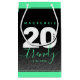 Celebrate the big two oh with this stylish modern design, which features striking black, white, and mint green block and handwritten lettering set on a rich black to smoky grey background. Reverse shows identical design.