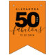 Celebrate the big five oh with this stylish modern design, which features striking block and handwritten lettering set on alternating rich-black-to-smoky-grey and orange backgrounds.