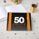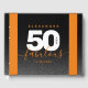 Celebrate the big five oh with this stylish modern design, which features striking block and handwritten lettering set on alternating rich-black-to-smoky-grey and orange backgrounds.