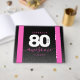 Celebrate the big eight oh with this stylish modern design, which features striking block and handwritten lettering set on alternating rich-black-to-smoky-grey and pink backgrounds.