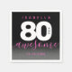 Celebrate the big eight oh with this stylish modern design, which features striking black, white, and pink block and handwritten lettering set on a rich black to smoky grey background.
