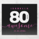 Celebrate the big eight oh with this stylish modern design, which features striking black, white, and pink lettering set on a rich black to smoky grey background.