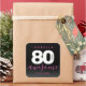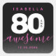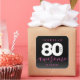 Celebrate the big eight oh with this stylish modern design, which features striking black, white, and pink lettering set on a rich black to smoky grey background.