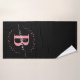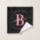 Girly, elegant, trendy, modern, pink and black, white monogram initial name script custom personalised monogrammed bath towel set. Featuring a monogram initial and a girly name script in a hand lettered calligraphy swash tail font and dotted circle frame around your monogram. Perfect feminine gift for sister, mother, girlfriend, birthday, wedding, bridal shower, sweet 16 birthday party, or anyone who loves pretty girly modern style.