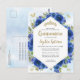 Modern Girly Royal Blue Floral Gold Butterfly Sparkle Glitter Quinceañera Invitation