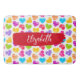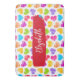 Modern Girly Vibrant Doodled Hearts Pattern Name Bath Mat
