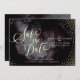 Glamour gold hand lettering calligraphy design and gold dots confetti on dark black sky night watercolor background, shimmer faux metallic gold glitter effect, modern, chic, elegant and classy, perfect for vintage wedding or winter wedding in evening. Custom your own save the date card for your wedding invitation set.
