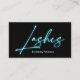 Modern glam blue neon lashes technician manicurist script logo qr code business card, add your social media, logo and qr code,