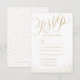 Glamour gold hand lettering calligraphy design and gold dots confetti, shimmer faux metallic gold glitter effect, modern, chic, elegant and classy, perfect for vintage wedding or winter wedding in evening. Custom your own RSVP card for your wedding invitation set.