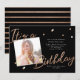 Make a bold and beautiful statement with this modern glam birthday photo invitation. Featuring a striking black background, elegant rose gold accents, and a chic photo layout, this design is perfect for celebrating milestone birthdays or any stylish birthday gathering. The sophisticated typography paired with a personal photo creates a polished, upscale look that feels both timeless and contemporary.