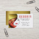 Stylish beautician's hair saloon business card, with graphics of colourful metallic looking hair, on the outline of a woman's face, against a white background. The back is done in a gold tone look. Personalise the text, front and back, to suit your needs.