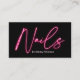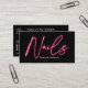 Modern glam pink neon nails technician manicurist script logo qr code business card, add your social media, logo and qr code,