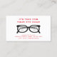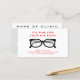Use this dual purpose optometry themed business card featuring a pair of reading glasses with the reflection of an eye chart in the lenses to remind patients of their upcoming eye exam or appointment. Personalise by adding the name of the optometrist or ophthalmologist and clinic contact information.