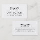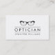 A modern business card for opticians. The business cards design shows a pair of eyeglasses with your business name between two divider lines and your name. The back includes all your contact details. Opticians determine the specifications of various ophthalmic appliances, such as contact lenses, spectacles lenses, low vision aids or ophthalmic prosthetics that will give the necessary correction to a person's eyesight.
