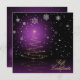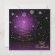 A gleamy and snowy Christmas illustration featuring a shining christmas tree and snowflakes on a purple background.