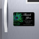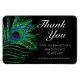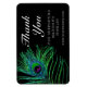 Modern Glitter Feather Bho Chic Thank You Small Business Promotional Magnet features peacock feathers in green, blue and purple on a black background with the text "Thank You" in elegant modern calligraphy white script. All text and background colours are customisable. Personalise by editing the text in the text box provided. Designed by Evco Studio https://www.zazzle.com/store/evcostudio