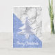 Modern glittery Christmas greeting card done in half blue sparkly look and half in a faux white marble. White custom text, on the outside reads Merry Christmas. Graphics of glitter and glass looking Christmas tree silhouette decorates the front of the card. Personalise the text inside with your own holiday greeting.