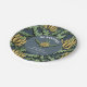 These playful "Go Bananas!" green and yellow personalised paper plates feature hand drawn yellow banana bunches and tropical green banana leaves against a navy blue background with subtle raindrop detailing in a lighter blue. All text is editable. Personalise with Name, Event and Date.