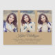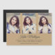 Modern, gold 3-photo graduation magnet card with text, "Save the date" in an elegant script font. Personalised with your name, school name, graduation year, graduation date, time, and location, along with a message telling friends and family that a formal invitation will follow.