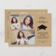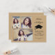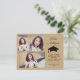 Modern and unique gold/tan 4-photo graduation flat card with text, "Save the date". Personalised with your name in an elegant script font, school name, graduation year, graduation date, time, and location, along with a message telling friends and family that a formal invitation will follow. Add 3 photos on the front and 1 on the back.
