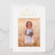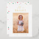 Cute, customisable family photo card with "'All is Bright" and text in real gold foil, with confetti on the back in bright red and green!