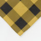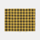 This image showcases a simple black plaid pattern set against a gold background. The design consists of evenly spaced, intersecting black lines forming a classic plaid grid, which contrasts strikingly with the rich, golden backdrop.