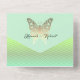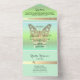 Elegant, modern, luxury, gold and green all-in-one wedding invitation with adorable unique butterfly - symbol of spiritual rebirth, hope, and life.