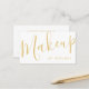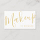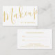 This appointment card features word "Makeup" in gold modern calligraphy font style on front side with details in gold modern sans serif font style on back side.