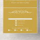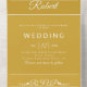 Modern gold and white typography and small flowers all in one fall wedding invitation. It displays your names in a cursive script elegant style typography and two small white flowers with leaves on both sides of the ampersand on gold. The RSVP can be detached.