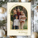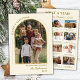 Modern Gold Arch Year in Review 13 Photo Collage Holiday Card. Celebrate the season with this elegant gold arch year-in-review holiday card. The front design features a modern arch-shaped photo frame with faux-gold colour Season’s Greetings typography on a soft neutral background—perfect for highlighting your favourite family portrait. Personalise it with your name, year, and special photo for a timeless look.