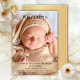 Elegant simple birth announcement card featuring a photo of your own baby with a soft gold stylised overlay and a gold gradient design on the back.