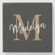 Modern Gold Black Monogram Feminine Script Name Stone Coaster. Easily personalise this modern elegant stone coaster with your custom monogram and name.