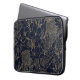 Modern Gold Blue Floral Doodles line art Laptop Sleeve