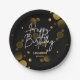 Modern Gold Bokeh Gradient Black Happy Birthday Paper Plate