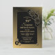 A modern geometric black and gold framed surprise 70th birthday party invitation.